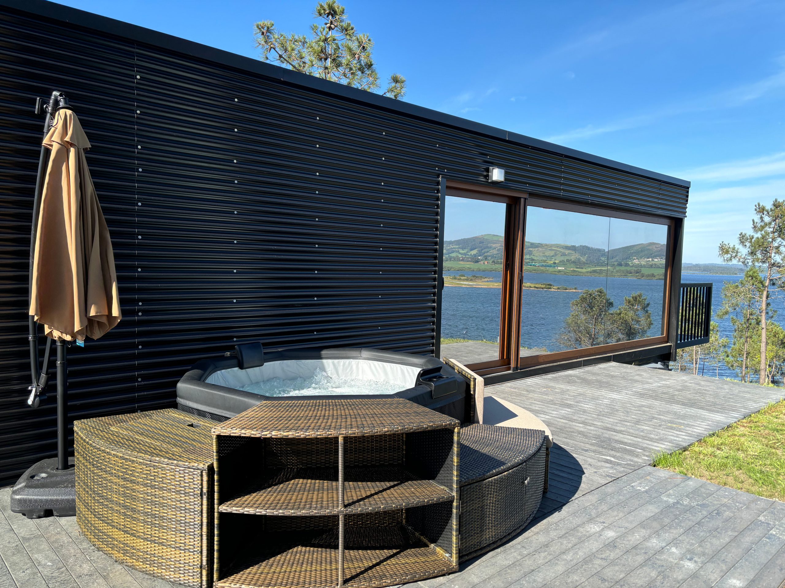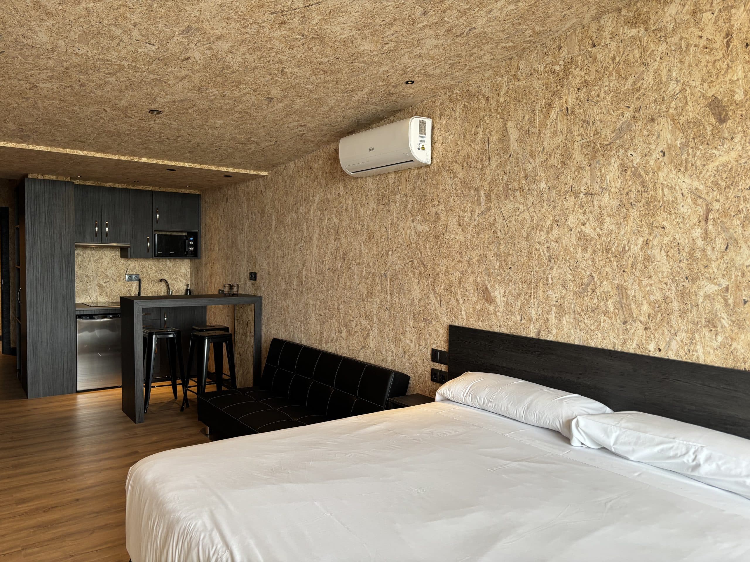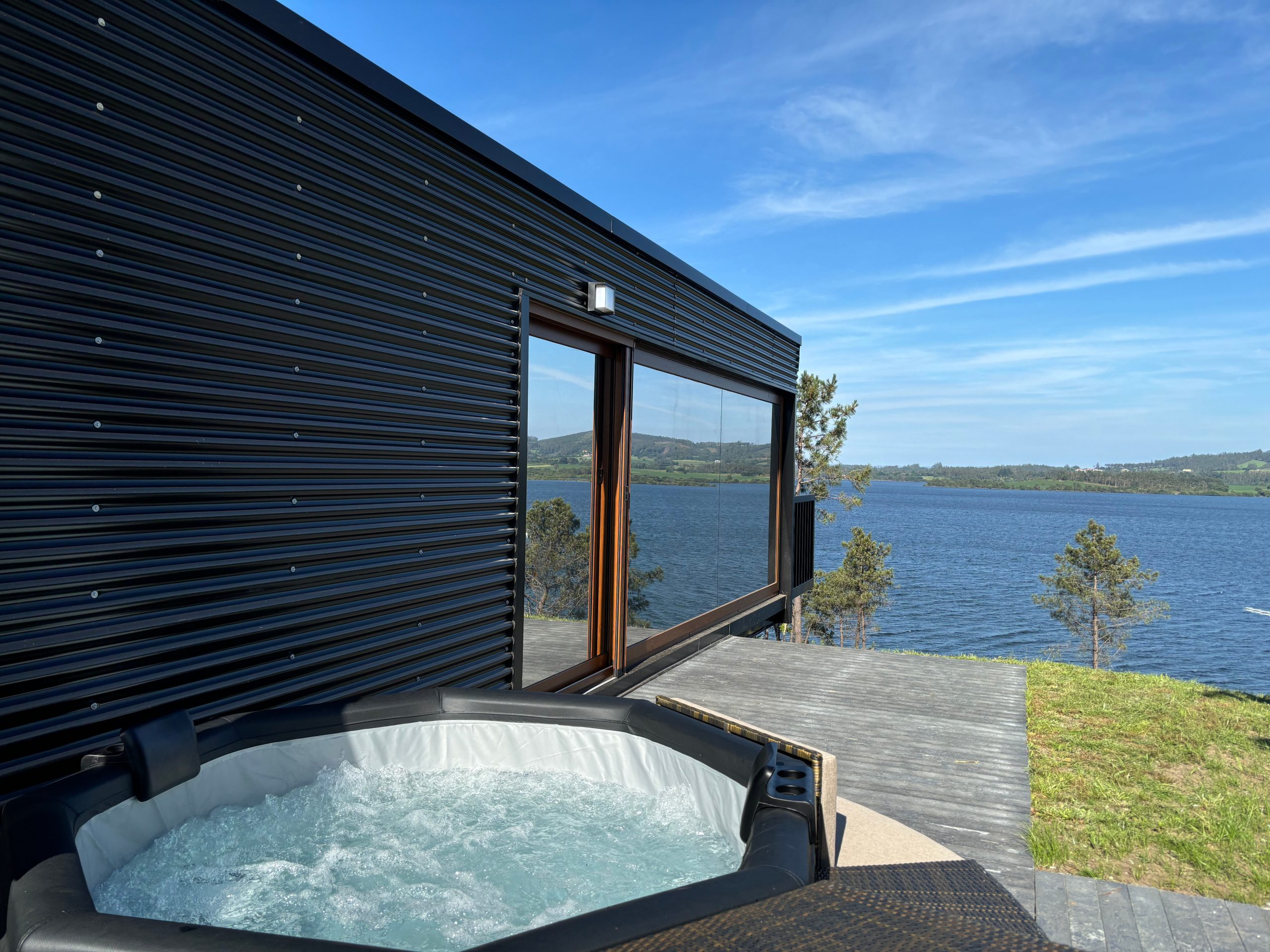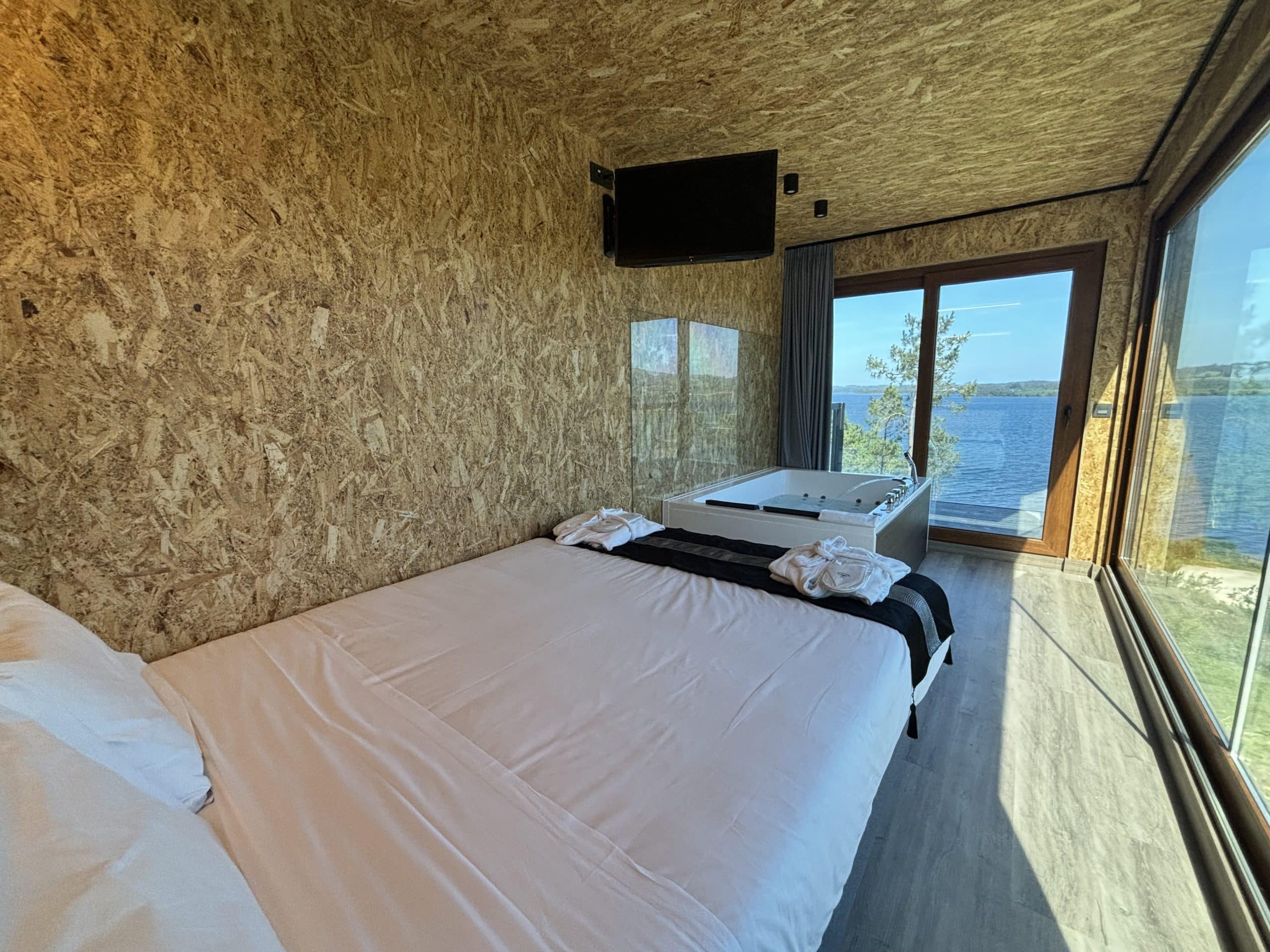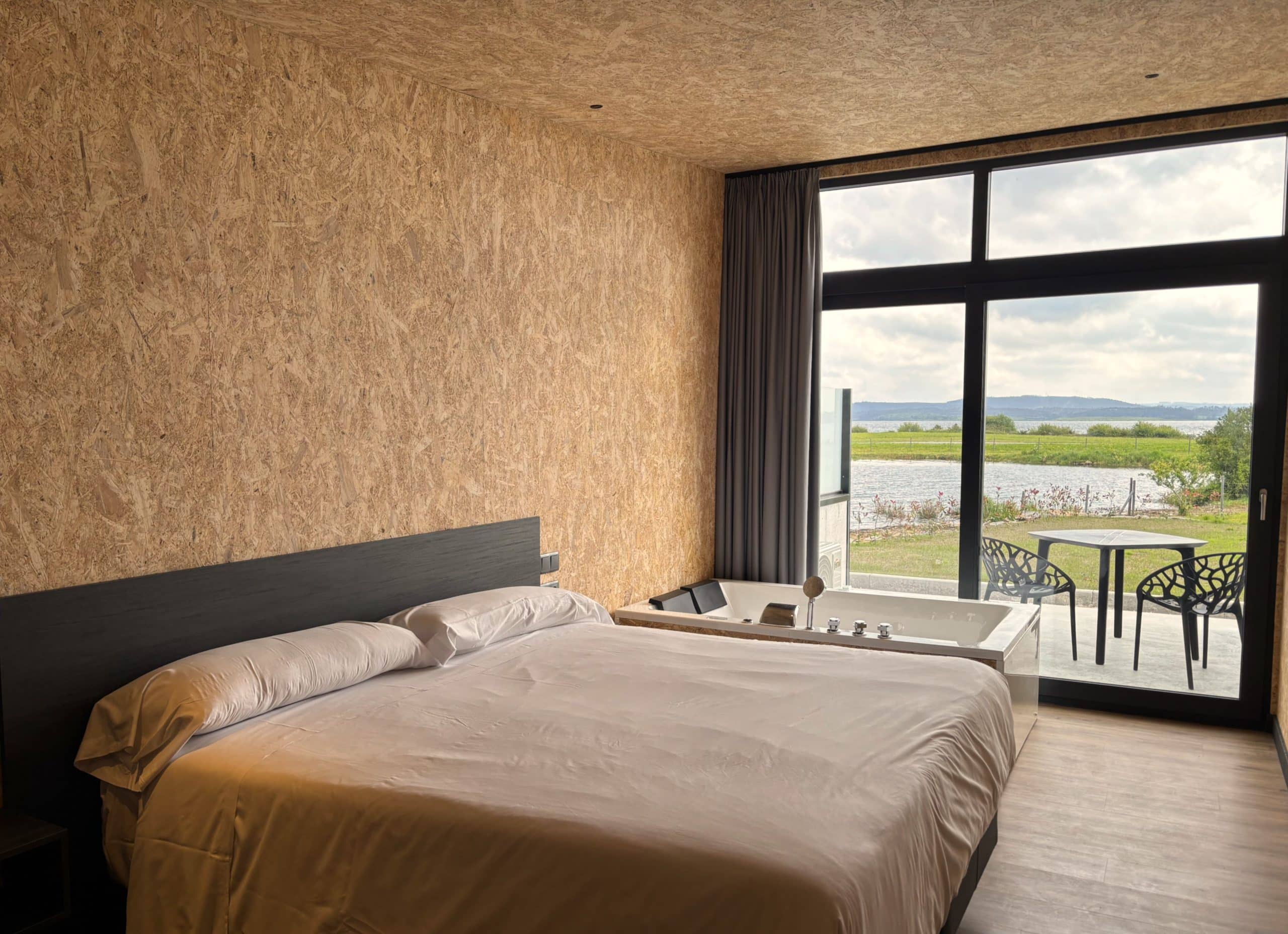 Todos los hangares cuentan con cama de 1,50m, jacuzzi para dos personas, baño y cocina-salón totalmente equipados para una estancia cómoda y agradable.