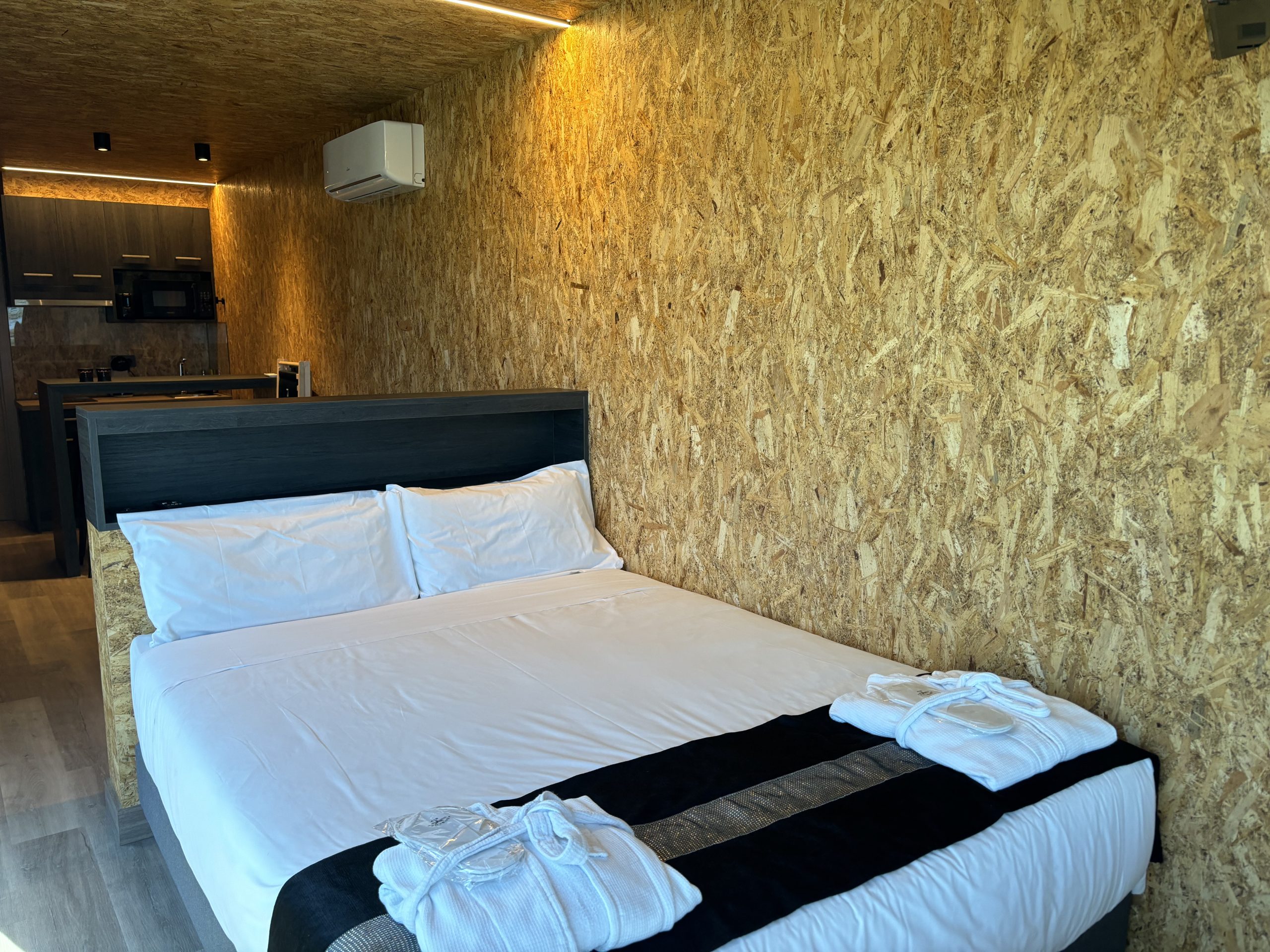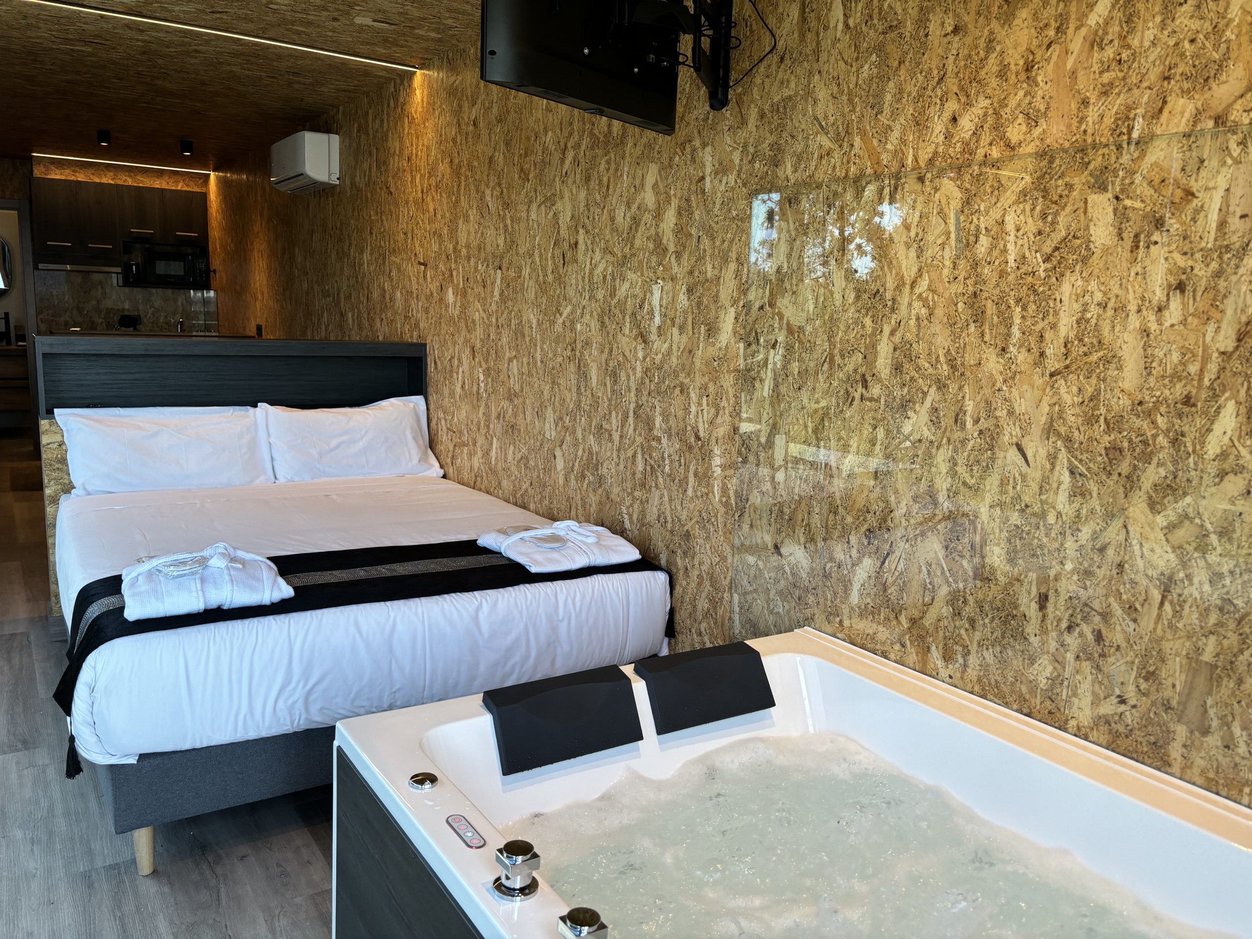 Se suman a esta experiencia 13 apartamentos recientemente construidos que constan de una habitación (en algunos dos habitaciones), baño con ducha hidromasaje, sofá cama en el salón, terraza y jacuzzi.