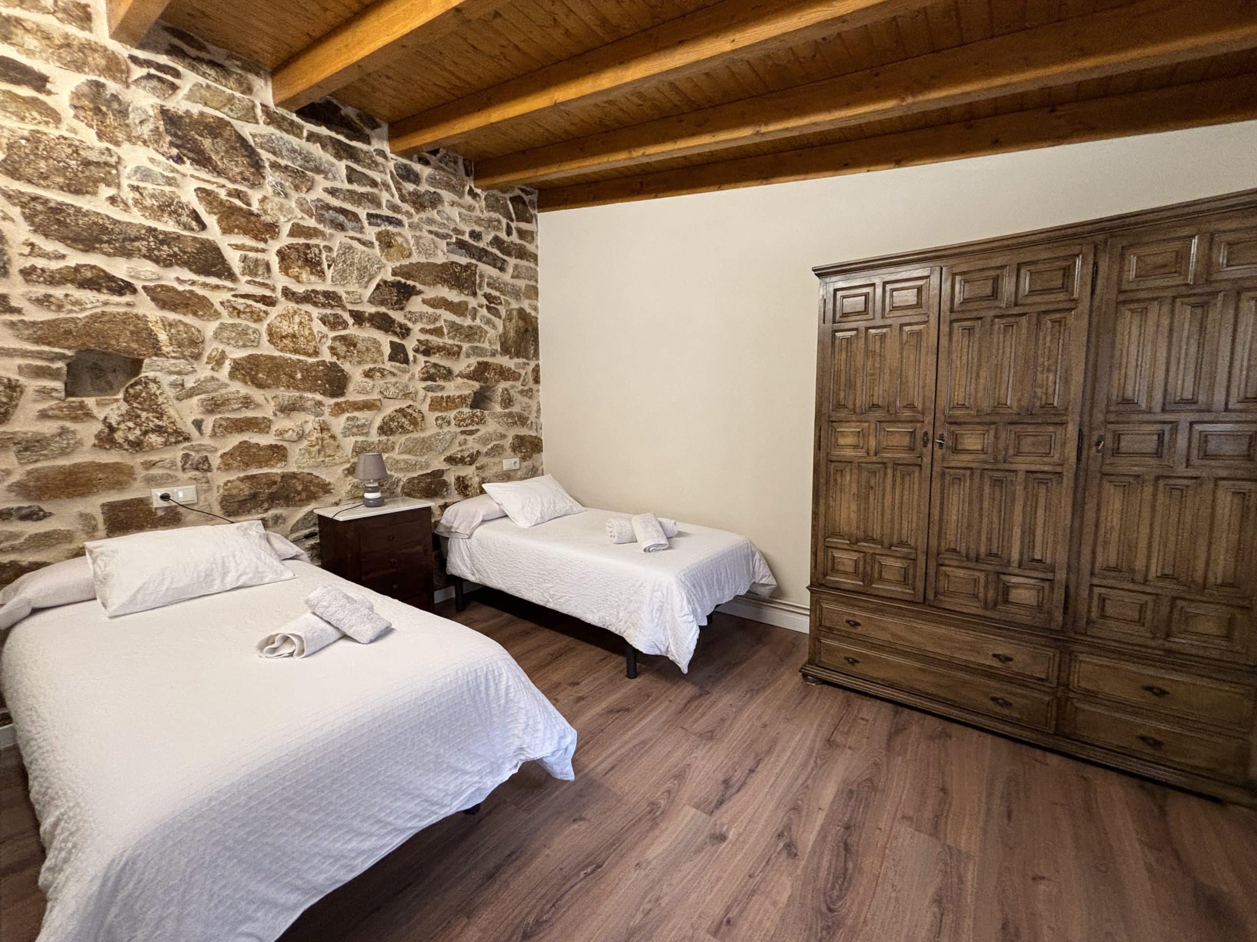 Al lado de una preciosa casa labriega gallega totalmente restaurada, se habilitaron 3 apartamentos lujosamente decorados y amueblados que cuentan con 2 dormitorios, cocina, salón, cuarto de baño y un porche cubierto enfrente a cada uno. Los apartamentos son muy luminosos y están rodeados de servicios como cenador, barbacoa, zona de juegos y esparcimientos, aparcamiento privado cerrado y lavandería que permitirán a sus visitantes relajarse en un entorno sumamente tranquilo o visitar cómodamente la Costa da Morte y sus playas, pueblos pesqueros o demás atractivos turísticos que son innumerables a escasa distancia.
