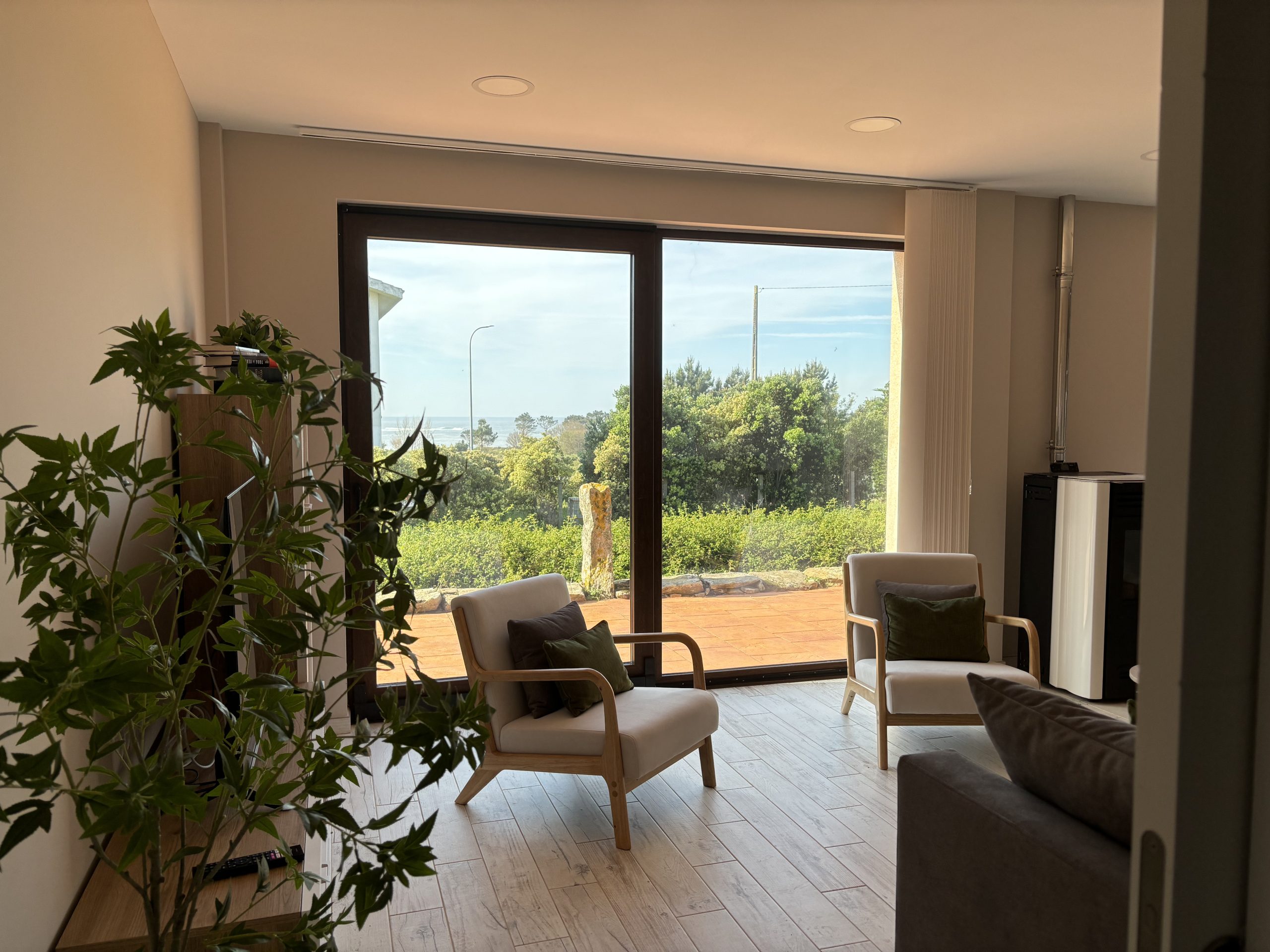 Chalet de reciente construcción situado al lado de la Playa de Lariño (Carnota). Su privilegiada ubicación permitirá a los huéspedes disfrutar de espectaculares vistas al mar y desplazarse fácilmente en coche por la costa gallega. Completamente equipada e ideal para familias y amigos que busquen playa y naturaleza.